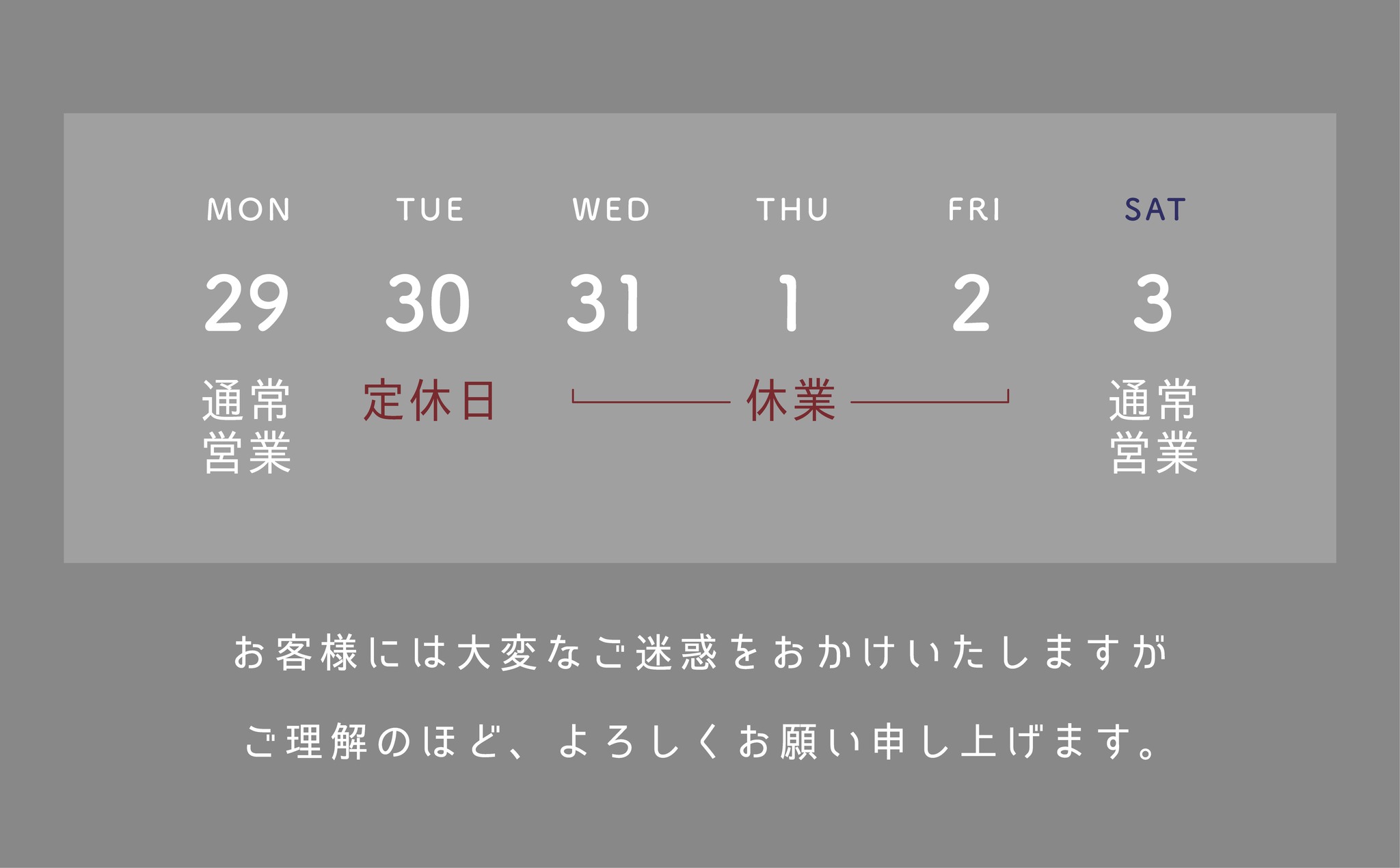 12/30 ( 火 ) 定休日
