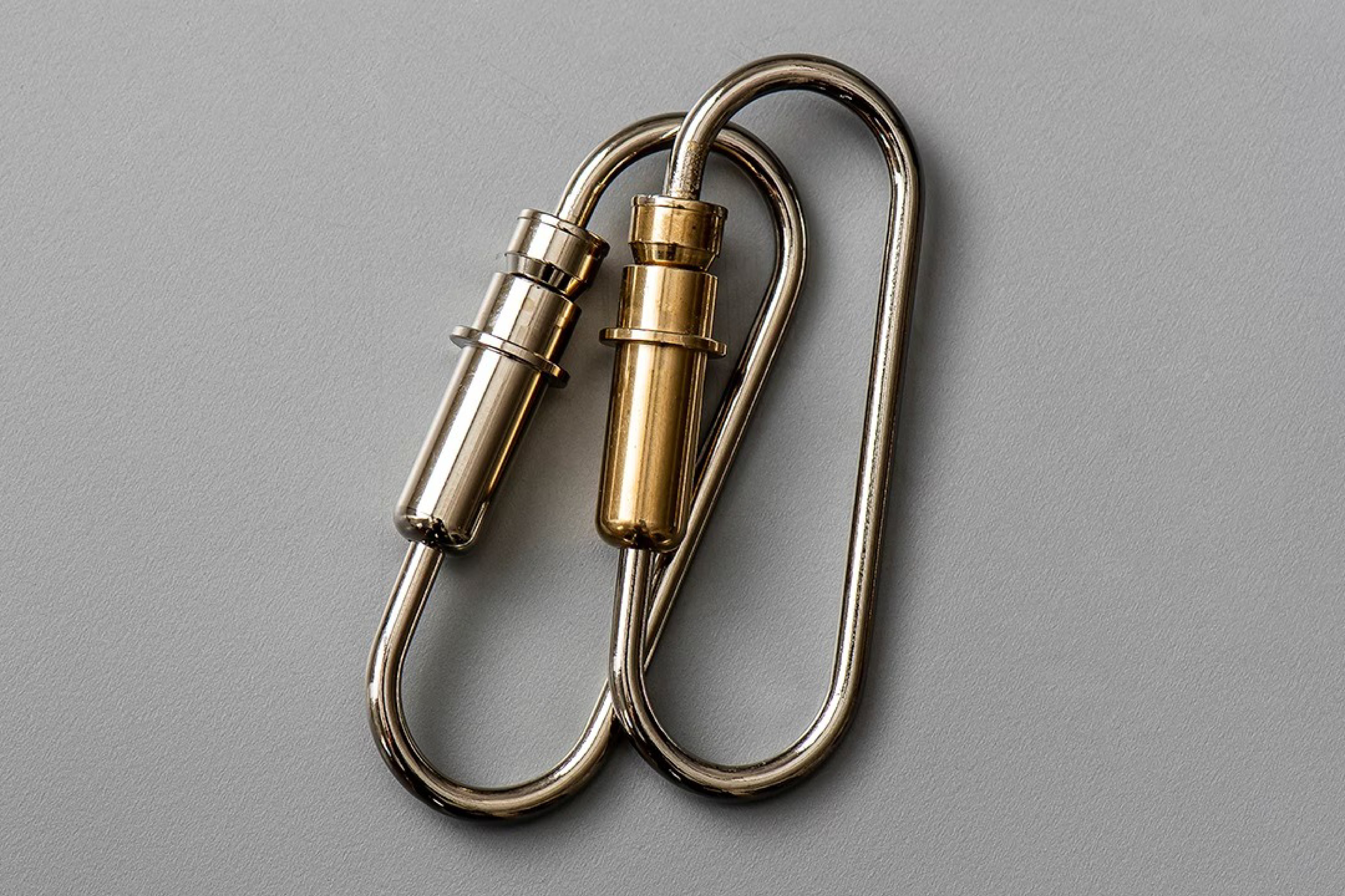 真鍮を削り出した重厚なカラビナタイプです。