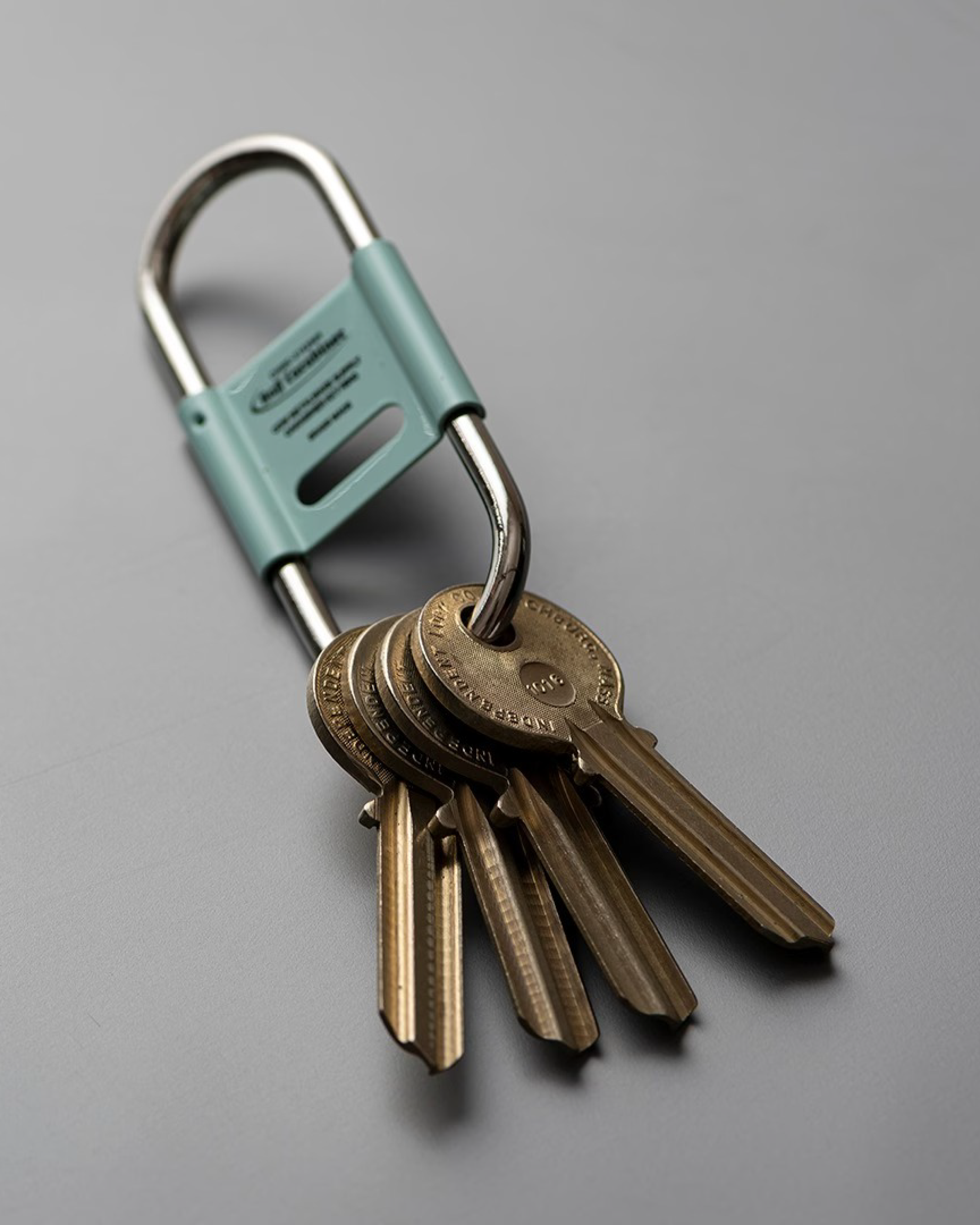 スプリング式で脱着しやすいカラビナタイプのキーリング。