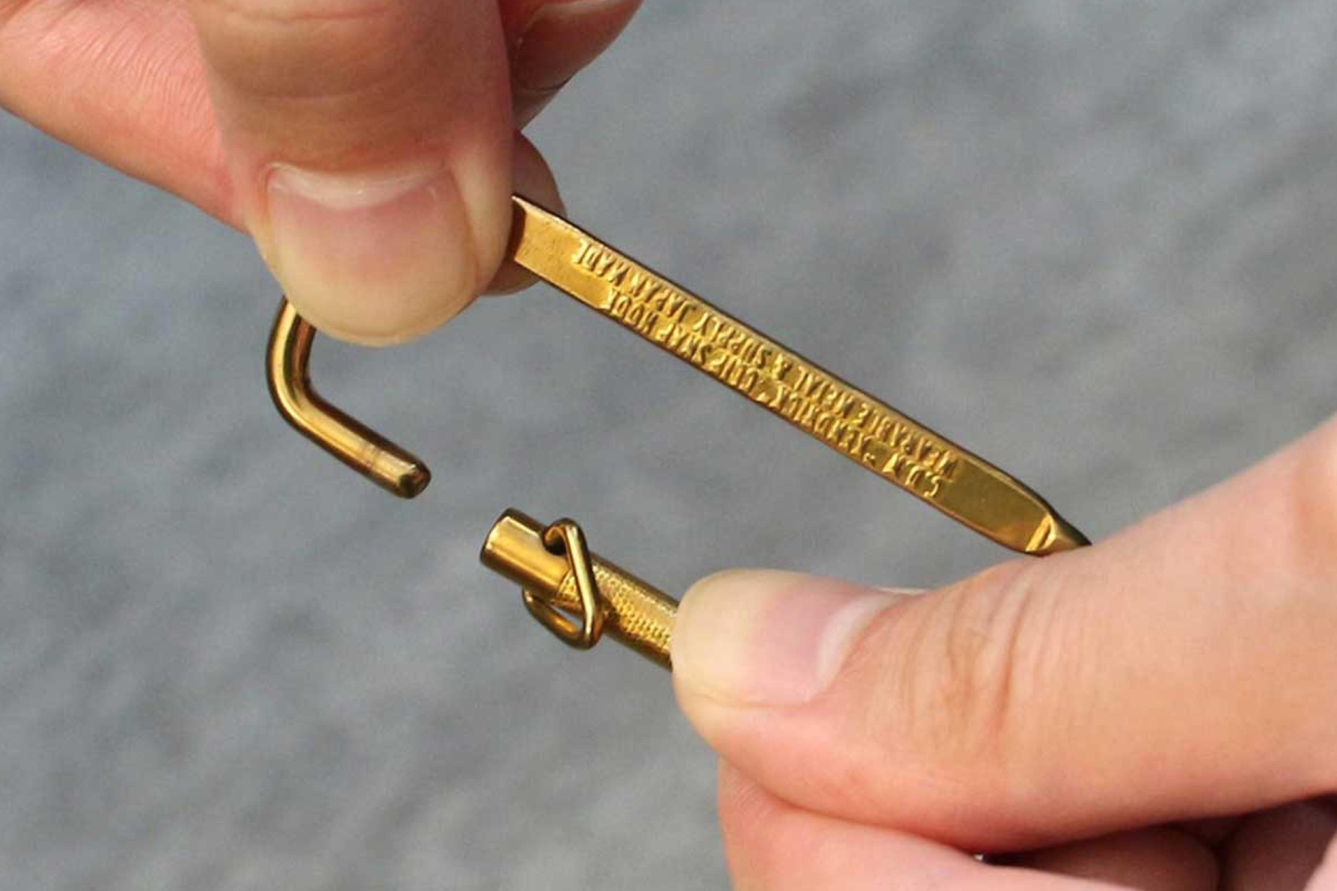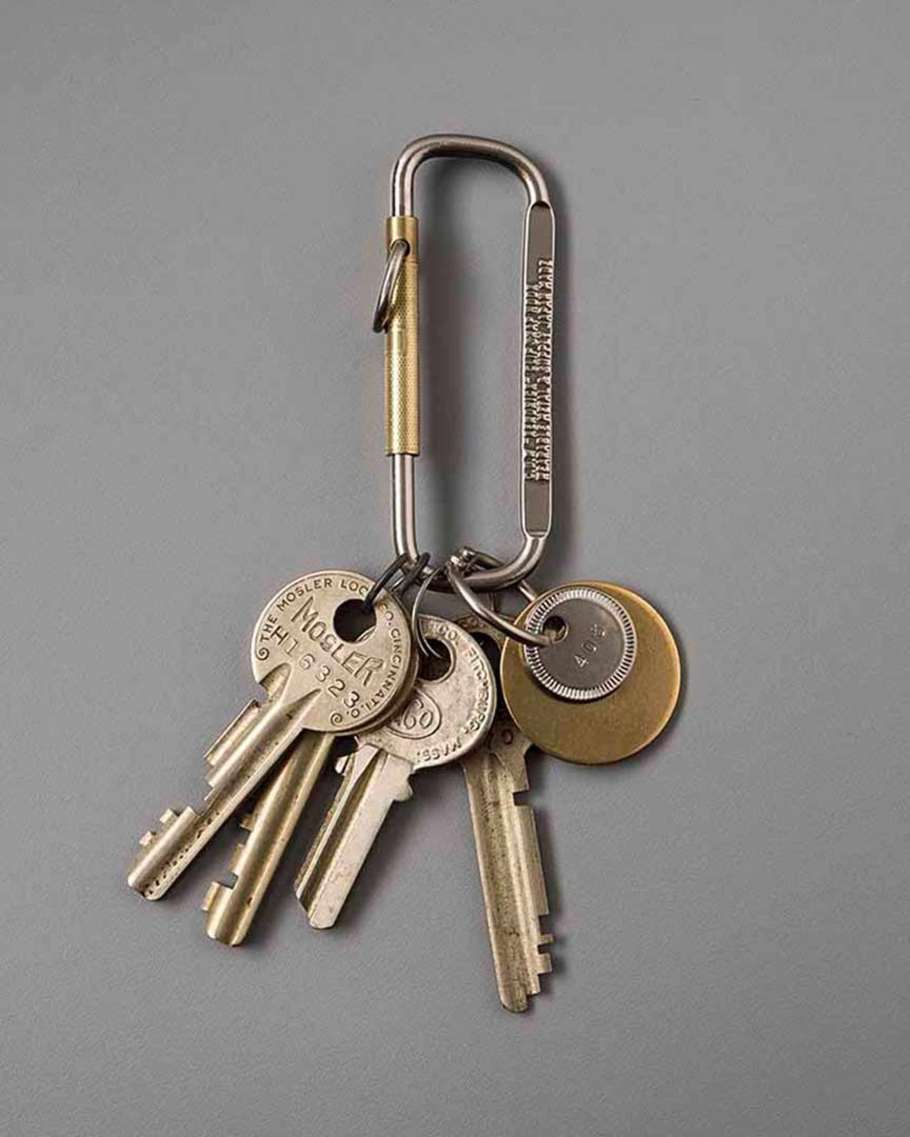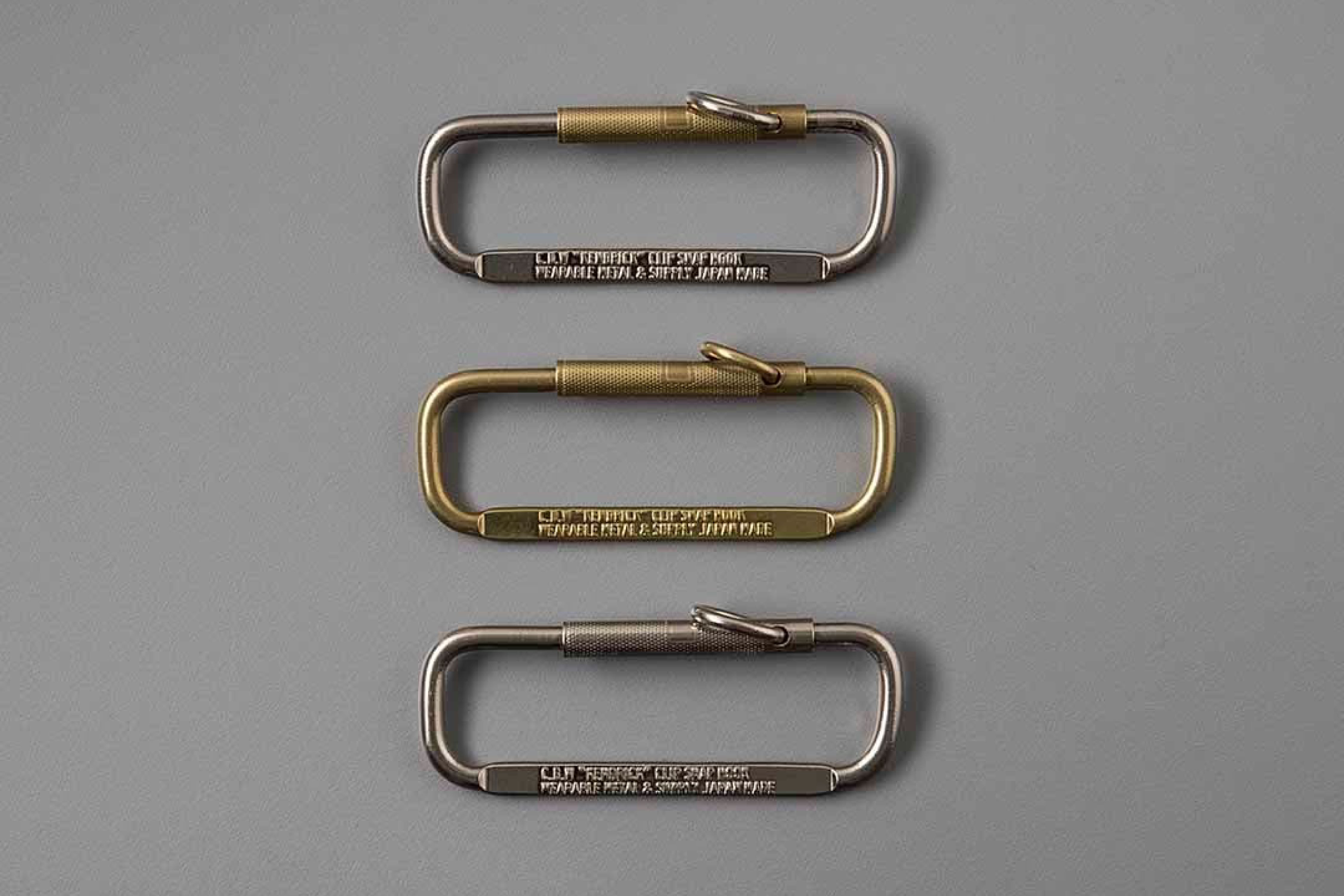 サイズ、素材、ディティール等に変更を加え制作されました。現在のカラビナの原型とも見えるシステムです。