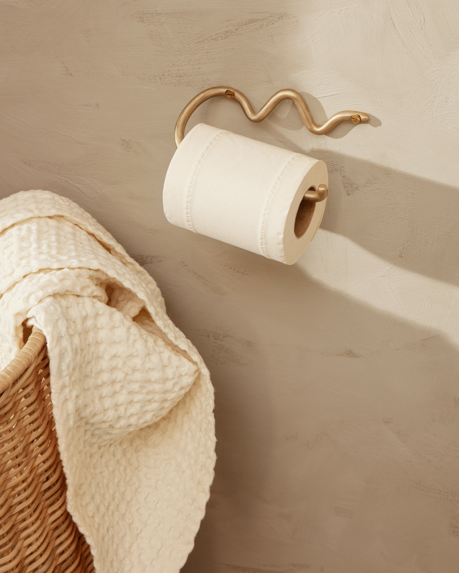 真鍮の美しさが光る「Ferm Living」オリジナルのトイレットペーパーホルダー。