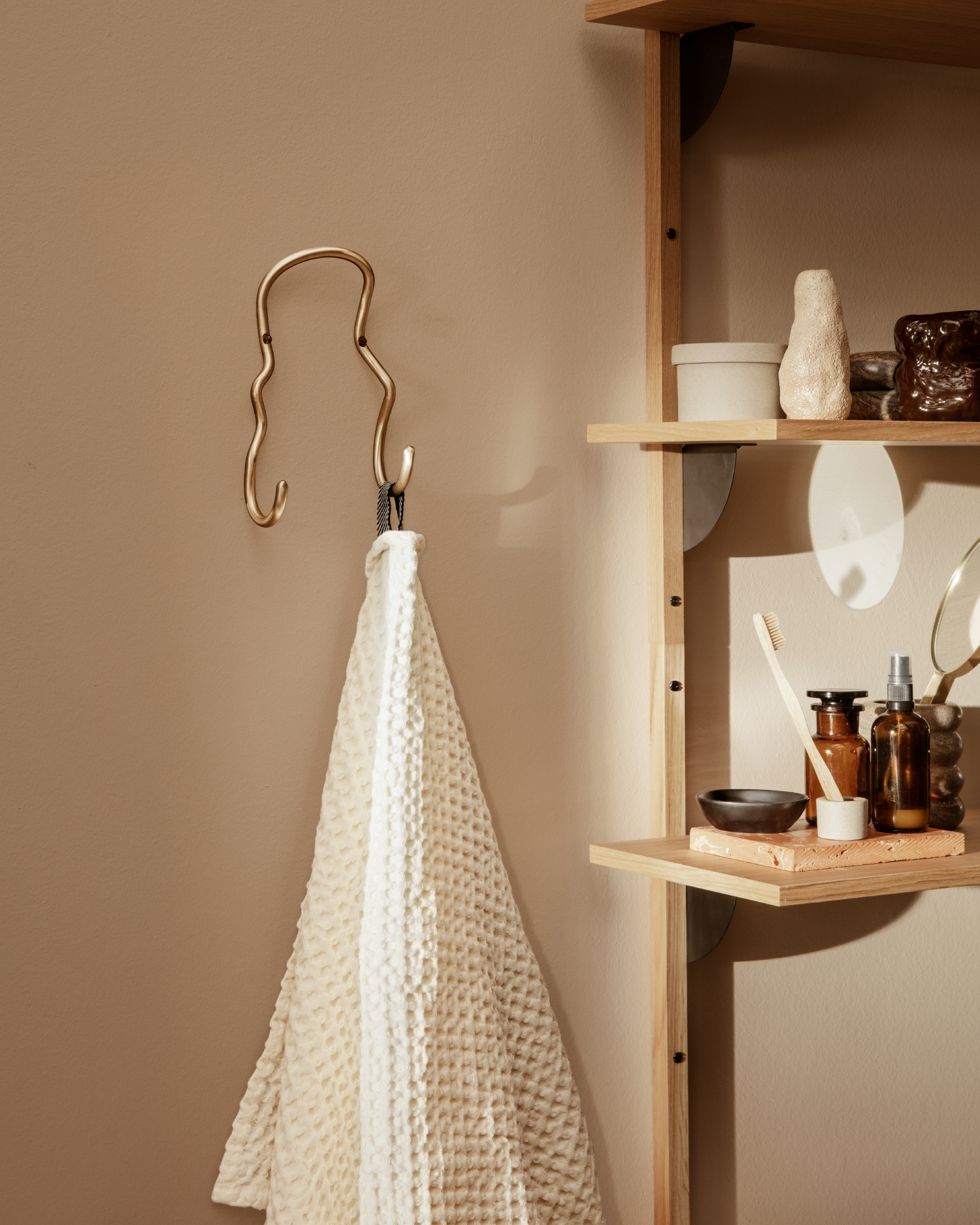 タオルや衣類、お気に入りのバッグやアクセサリーなど、ちょっとしたアイテムをまとめて掛けられる機能性をもちながら、壁面のアクセントとしても美しいフォルムが空間を豊かに彩ります。