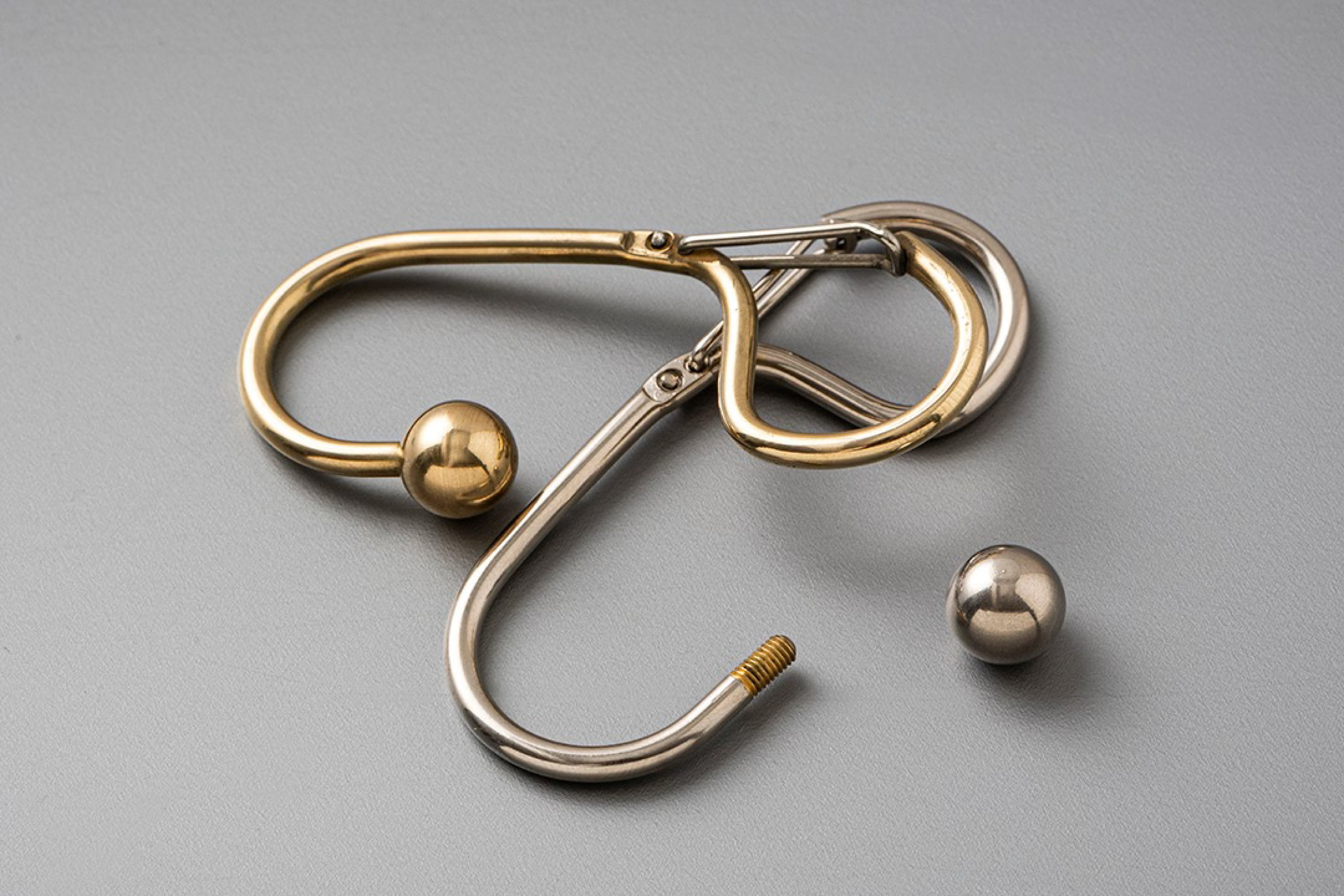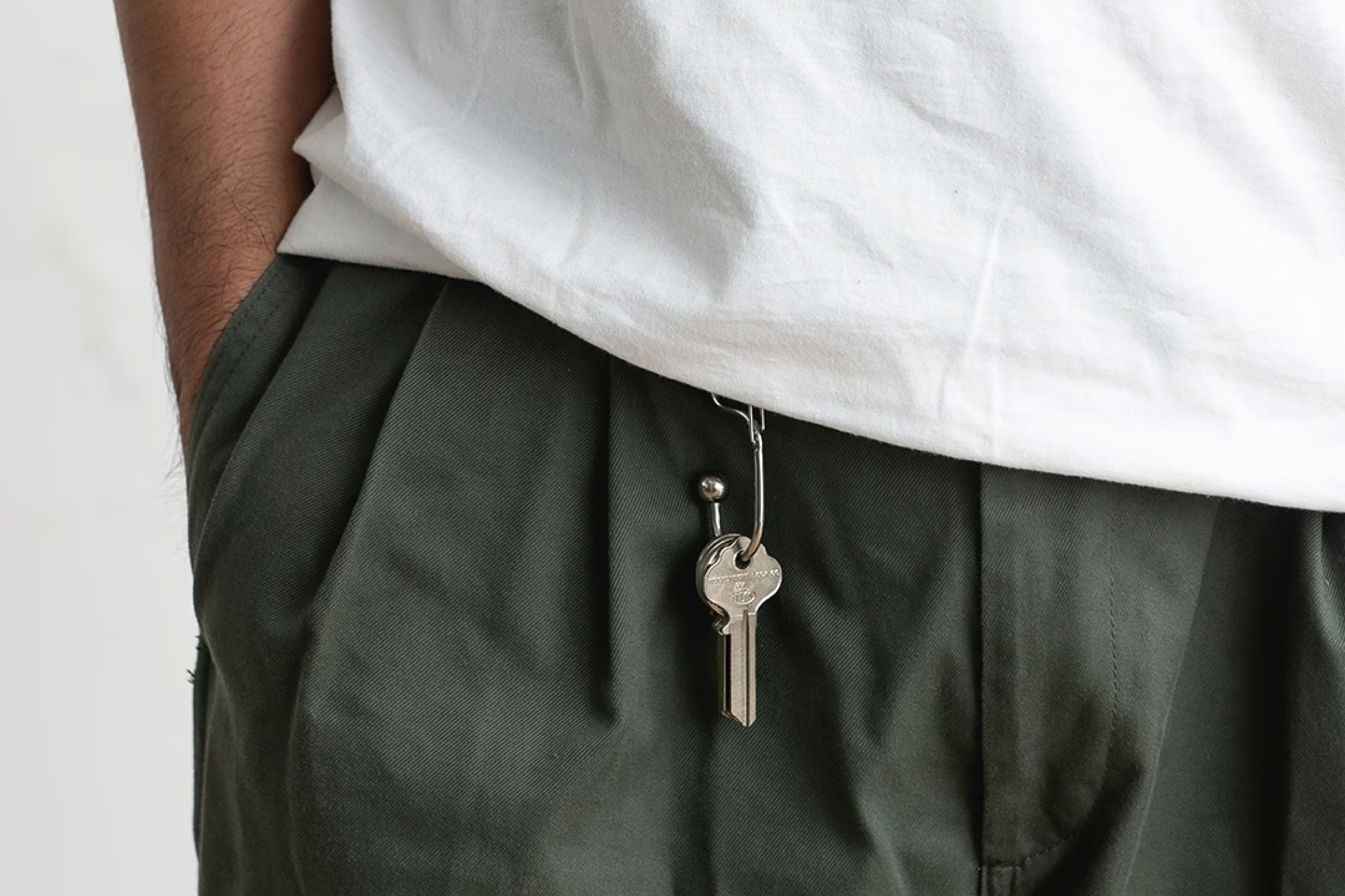 着脱しやすく、クラシカルな雰囲気のするカラビナタイプのキーリングをと思いCK23をベースに作成されたキーリング。